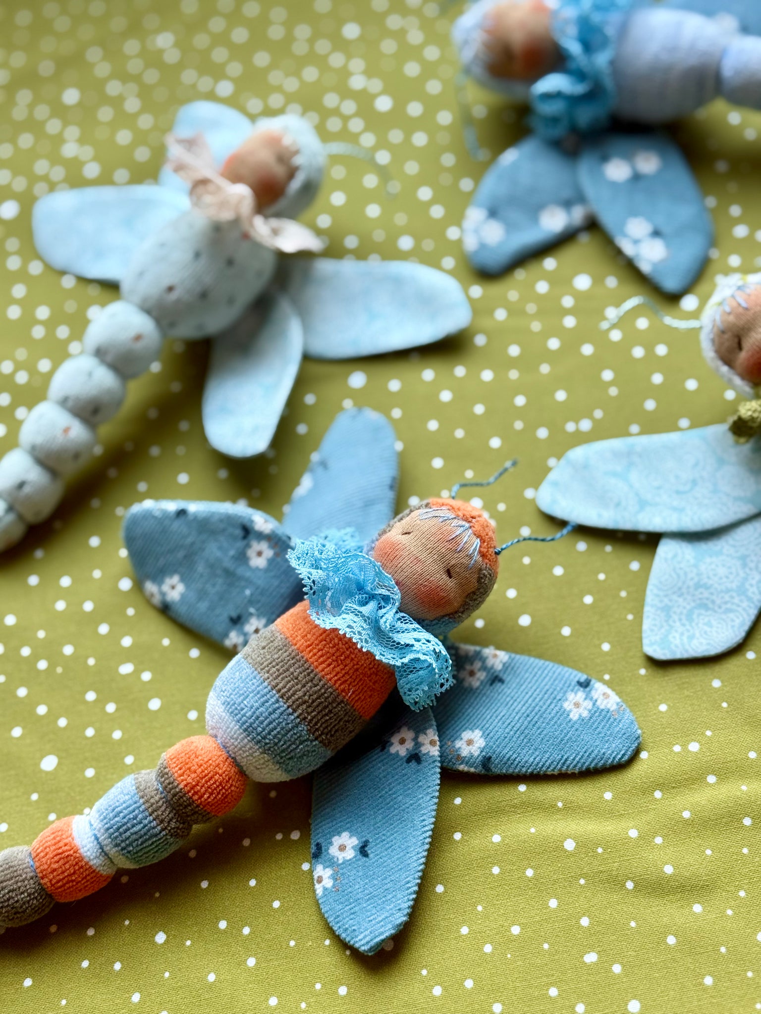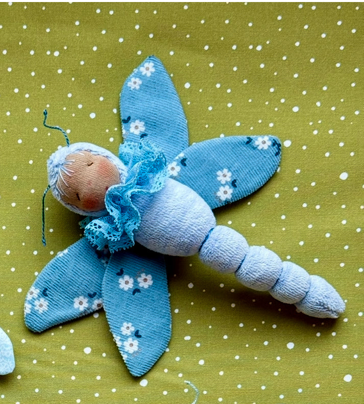 Handmade Tiny Dragonfly from the softest Nicky velours and organic cotton, bio wool inside. 100% Natural.
